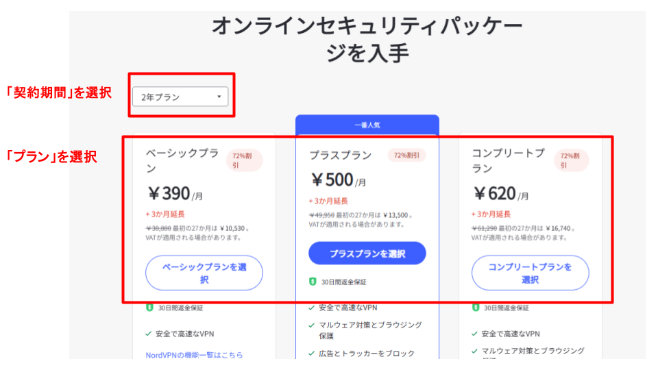 NordVPN公式サイトで購入する手順は下記のとおりです。